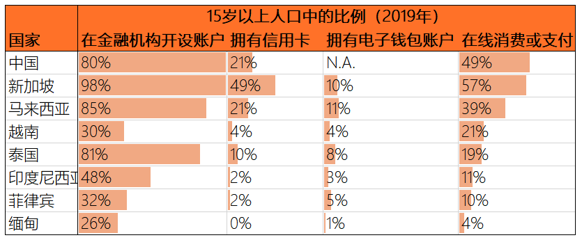 表1:2019年中國及東南亞國家數字金融服務情況