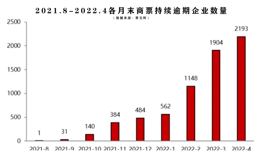 根據(jù)票交所最新公布的企業(yè)持續(xù)逾期名單顯示,截止4月30日,共有2193家企業(yè)商票逾期,第一次突破“兩千家”