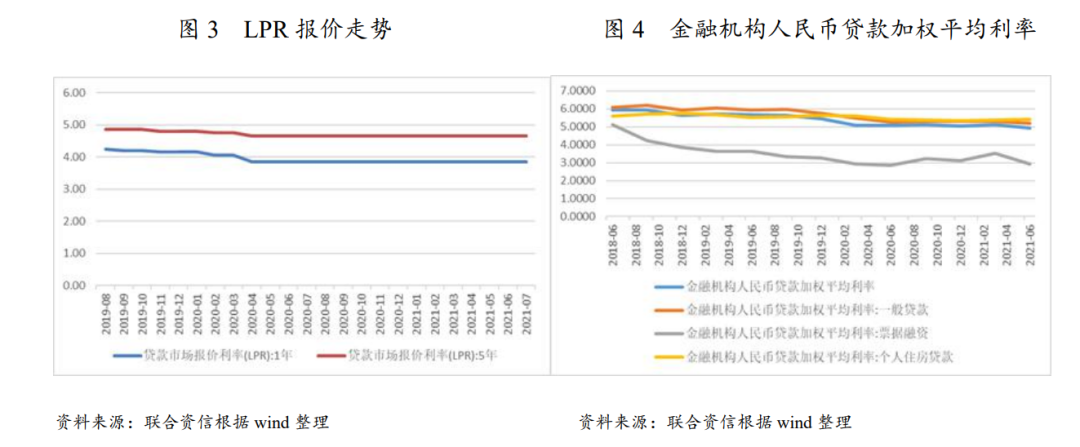 社會融資成本方面,2021年,央行貨幣政策堅持“穩字當頭,不急轉彎”的政策思路,年內LPR報價保持穩定;截至2021年6月,金融機構人民幣加權平均利率為4.93%,創2018年6月以來新低,實體經濟貸款利率下行,而個人住房貸款利率受房地產嚴監管影響有所上升。