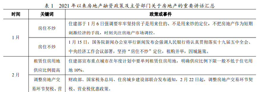 2021年作為“十四五”規劃的開局之年,房地產行業依舊延續“房住不炒、因城施策”的政策主基調,政策持續高壓,針對個別前期市場熱度較高的城市,上半年調控持續加碼;同時,新型城鎮化、住房保障體系建設作為重點持續被強調。