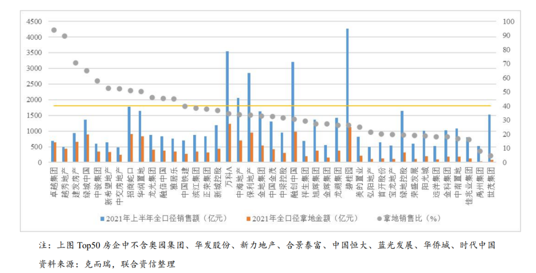 同時也需關注到,2021年7月,監管重新強調被納入“三道紅線”試點房企新增土地金額不能超過年度銷售額40%,監管范圍不僅限于公開市場拿地,還包括收并購方式獲地的支出。上述規則為去年8月出臺的“三道紅線”的配套要求之一,“雙集中”首批供地市場過于火熱,此則規定再度強調系側面要求房企在后續集中給供地時保持適度拿地節奏。在不排除“三道紅線”試點房企名單進一步擴容的前提下,該政策將限制處于擴張期房企的擴張規模和速度,彎道超車機會進一步減少,將在一定程度上加劇分化,同時有助于提高房企開發及去化質量。