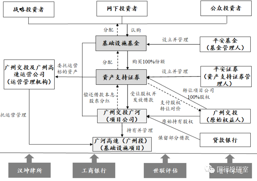 (2)上述市場主體將符合條件的基礎設施項目轉讓給基礎設施資產支持計劃(證券公司與基金公司子公司發行),實現資產出表,獲得資金回收。