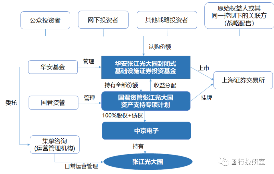 (3)具有公募基金管理資格的證券公司(含資管子公司)與基金管理公司以此為基礎設立公募基礎設施REITS基金,向戰略投資者(含原始權益人)、網下機構者與公眾者投資者募集資金,并通過上述資產支持計劃投向基礎設施項目,持有基礎設施項目所有權與經營權。