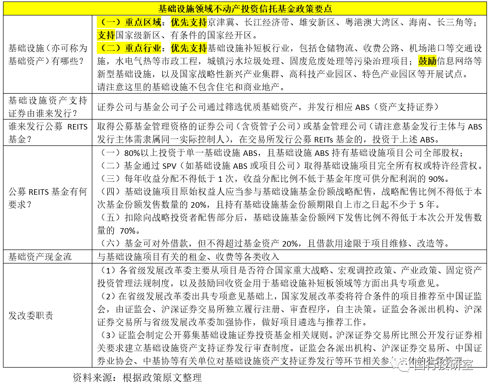 公募REITS是基礎設施項目的一種融資方式,因此這對基礎設施項目的承載主體顯然是利好,而城投平臺、國有企業等通常是基礎設施項目的主要推動力量。公募REITs推出后,意味著原有的城投平臺、國有企業可以通過將基礎設施項目轉讓給SPV(基礎設施項目ABS)實現退出,相當于拓寬了這類城投平臺、國有企業的融資渠道。特別是對于這類主體來說,其可以通過開展基礎設施項目、公募REITs等形式滾動實現投資的良性循環,是穩投資和降杠桿的重要舉措。
