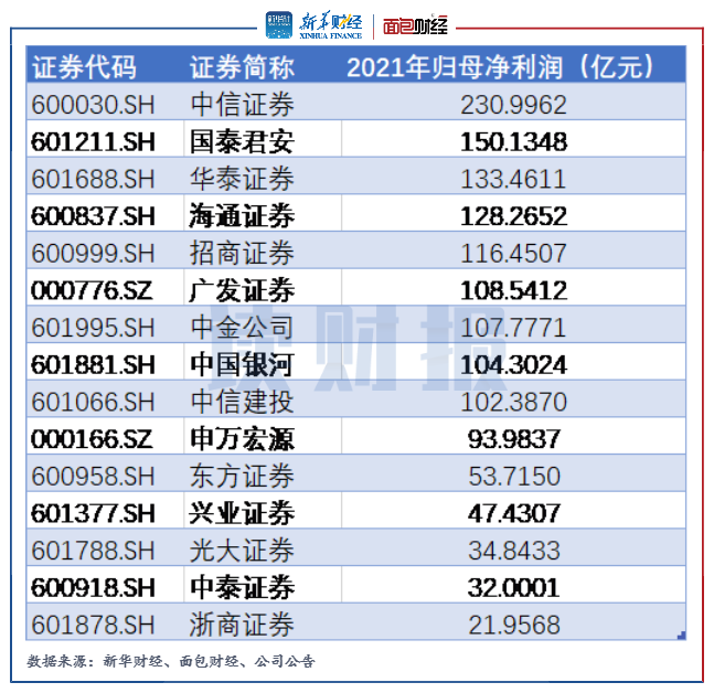 截至3月30日,共有26家上市券商發(fā)布2021年年報,其中中信證券、國泰君安、華泰證券等9家大型券商當年的歸母凈利潤超過百億元。