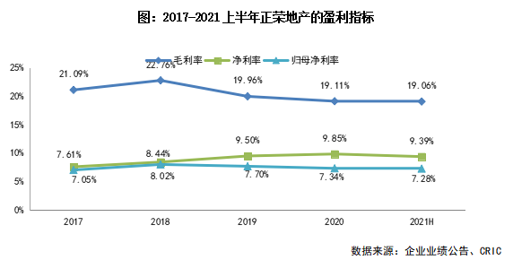 期內,正榮新發行的優先票據成本較期初下降60bps至6.7%,境外人民幣點心債成本從期初的7.4%下滑至7.125%,境內公司債票息下行至6.3%,并通過借新償舊的方式成功贖回13億美元的境外債(票息5.6%-9.8%)。債務置換實現綜合融資成本的改善,2021上半年融資加權利率6.35%,較年初減少0.15pct,資金成本優勢凸顯。