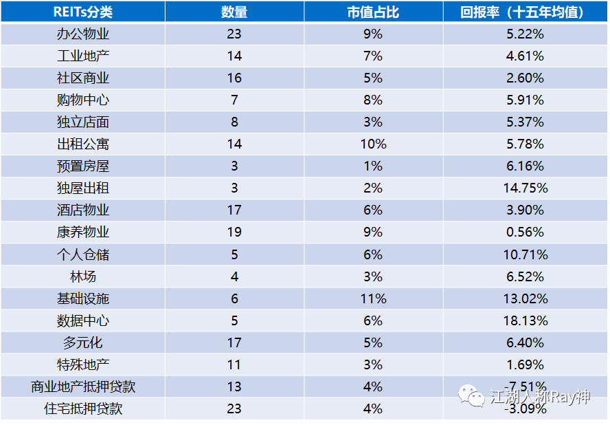 圖3:北美不同類型REITs的回報率(1994-2018)