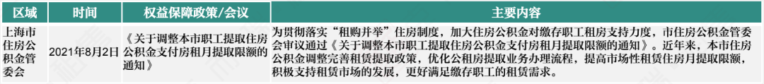 8月2日,上海率先發布《關于調整本市職工提取住房公積金支付房租月提取限額的通知》提高了市場性租賃住房月提取限額。隨后在上海發布的住房發展“十四五”規劃中,又提及了堅持民生為本、租購并舉、布局優化、精細治理、品質發展5個基本原則。