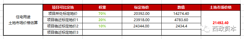 宗地地價=∑(土地市場價格×對應建筑面積×基礎修正系數×項目修正系數)