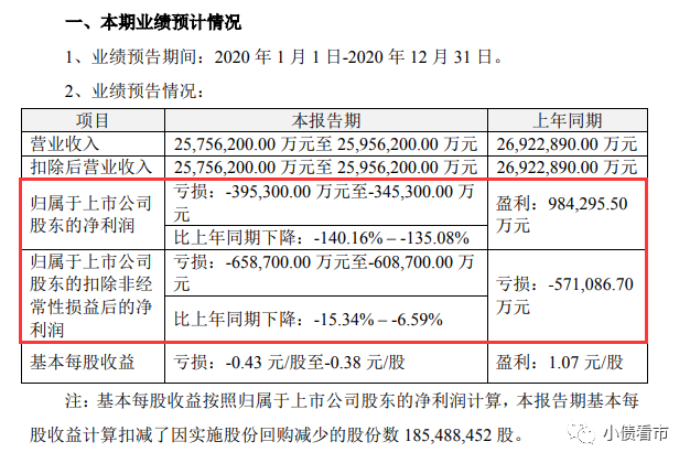 據《業績預告》顯示,2020年蘇寧易購歸屬于上市公司股東的扣非凈利潤虧損金額預計達到60.87億-65.87億元。