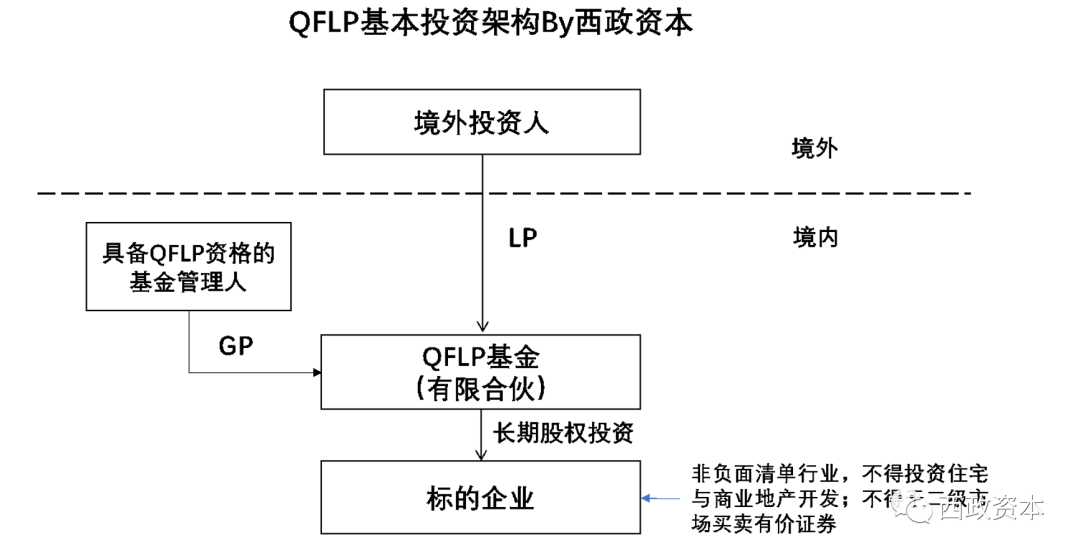 3. QFLP基金在投資范圍上不得投資于外商投資負面清單中的行業,不得投資于住宅及商業地產開發,亦不得投資于二級市場進行有價證券的買賣,并遵守各地QFLP政策中的相關規定。