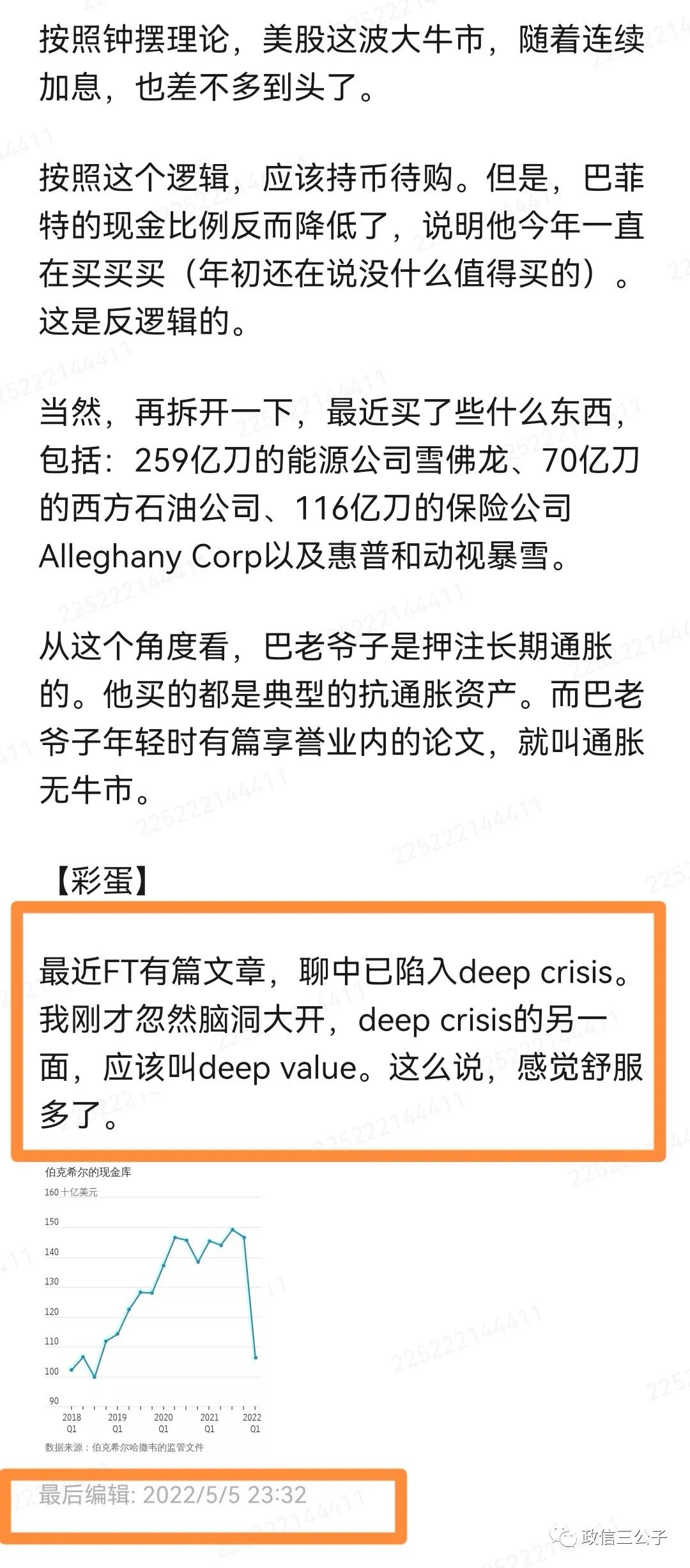 5月2號看完巴菲特和芒格的股東會,當(dāng)晚寫了篇體會。剛才瞥了眼美股,已經(jīng)跌到慘不忍睹,預(yù)見性還是一流的。
