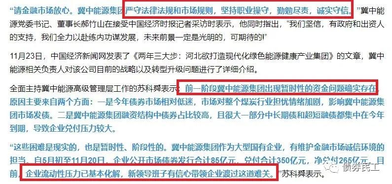 此前的2020年11月23日,冀中能源首次公開發聲回應公司債務問題,明確“企業流動性壓力已基本化解,新領導班子有信心帶領企業渡過這道難關,請金融市場放心!”