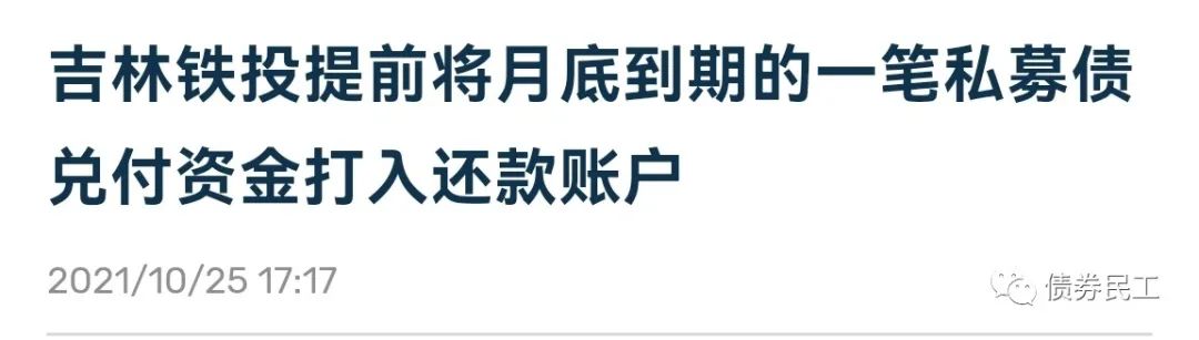 根據DM2021年10月25日的推送的信息,吉林市鐵路開發有限公司(以下簡稱“吉林鐵投”)提前將月底到期私募債兌付資金打入還款賬戶。根據公開信息查詢,這筆私募債應該是“18吉林鐵投PPN001”,到期日是2021年10月30日。