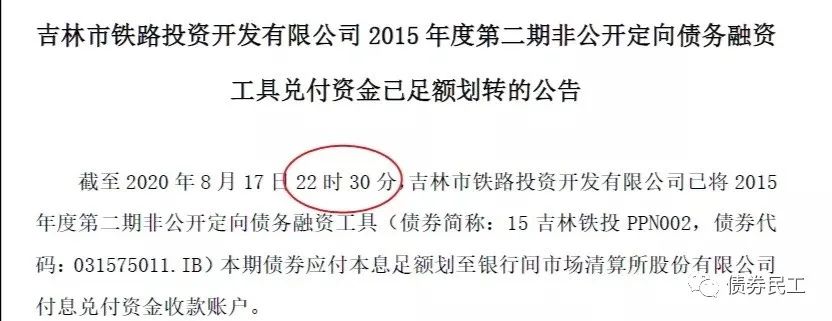 此前的2020年8月17日,因為15吉林鐵投PPN002兌付的不確定性,吉林鐵投成為整個市場關注的關注點,讓人一時忘了華晨的問題。不過隨著半夜的這一紙兌付公告,吉林鐵投再次完成了債券的兌付。