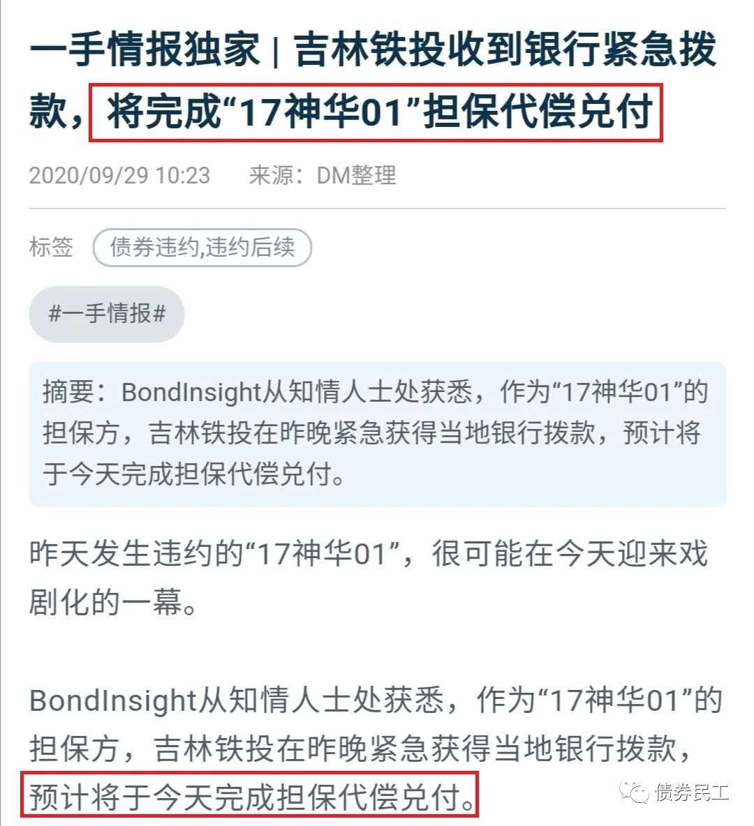 此后的2020年9月29日,吉林鐵投擔保的17神華01目也履行代償責任。