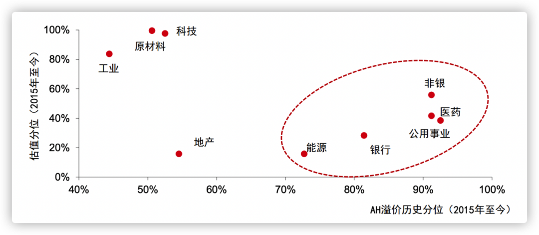 圖2 2015年至今AH溢價歷史分位及估值分位