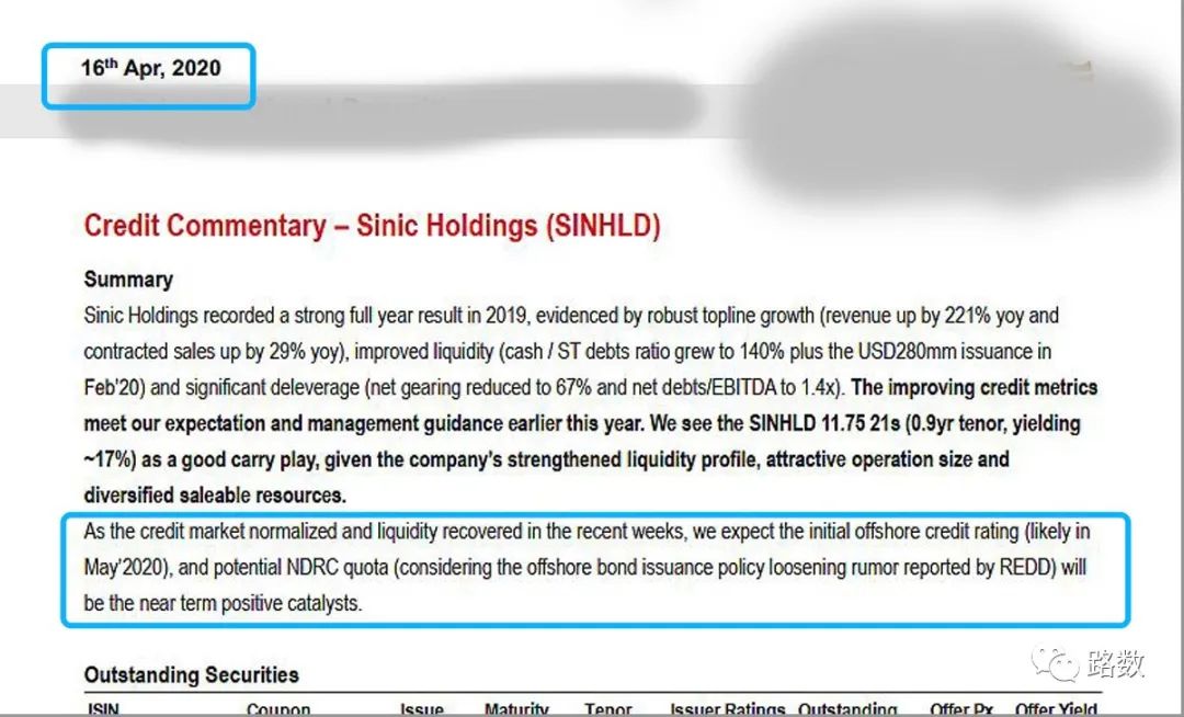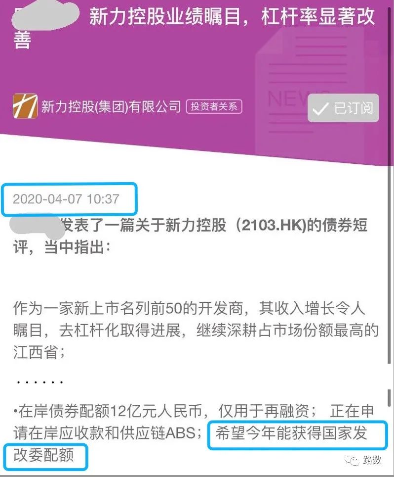 至少有3家機(jī)構(gòu)在2020年4月發(fā)布的研究報(bào)告中明確表明:當(dāng)時(shí)新力地產(chǎn)正處于申請發(fā)行外債額度中。注意,是進(jìn)行時(shí),而非完成時(shí)。▼