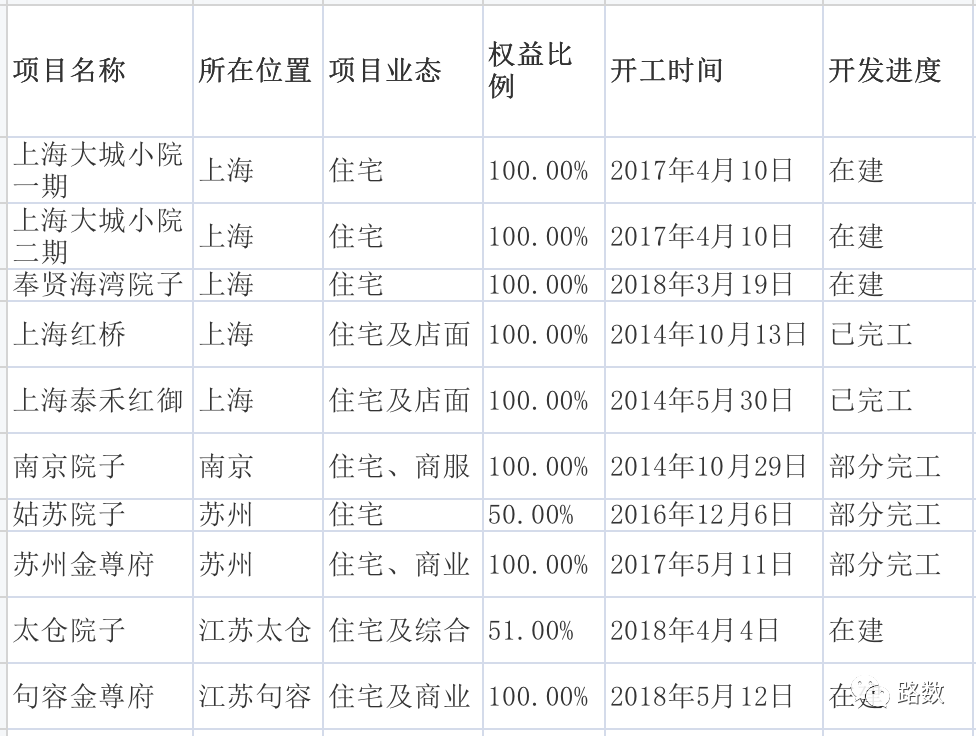僅從開工時間、開發進度、權益占比看,泰禾在上海和江蘇的情況可以發現: