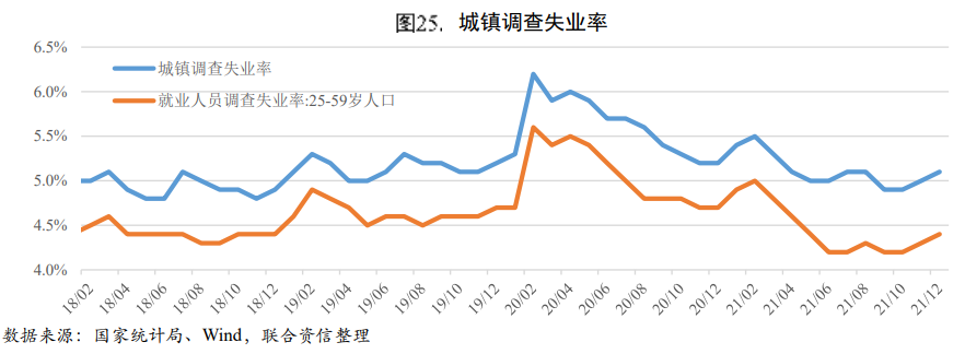 就業(yè)形勢總體基本穩(wěn)定。2021年城鎮(zhèn)新增就業(yè)1045萬人,完成全年目標(biāo)任務(wù)的95%;城鎮(zhèn)調(diào)查失業(yè)率均值為5.10%,低于全年5.50%左右的調(diào)控目標(biāo)。從結(jié)構(gòu)看,重點群體就業(yè)情況有所改善。2021年下半年,就業(yè)主體人群(25-59歲人口)失業(yè)率一直穩(wěn)定在4.50%以下,低于前兩年同期水平;2021年末,全國農(nóng)民工規(guī)模達(dá)到2.93億人,較上年末增加691萬人,恢復(fù)至疫情前2019年末水平。
