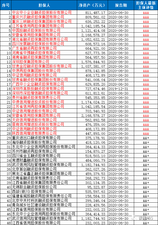 02 最新債券市場(chǎng)3A評(píng)級(jí)擔(dān)保公司一覽