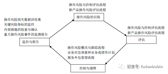 操作性風險管理主要是針對不完善或有問題的內部程序、人員、系統以及外部事件所造成損失的風險,進行主動識別、評估、控制或緩釋、監測和報告的過程,借助操作風險管理的相關工具可以對操作風險進行有效地管理。其管理流程主要如圖所示: