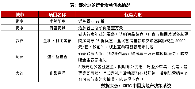 企業返鄉置業動力不足,消費者購房意愿同樣低迷。多數城市諸如常州、徐州等春節期間案場到訪量都偏低,有些樓盤甚至一天僅有1組客戶到訪,轉化率數據也不容樂觀,而CRIC監測的無錫春節期間60個在售項目中,約1/3的項目每天僅有1套成交。部分房企嘗試以價換量,但是實際效果并不明顯。