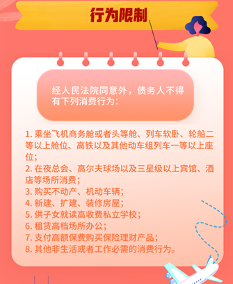 最后,債務人破產考察期內需遵循的行為限制,基本與失信被執行人/限制高消費人群類似。可以看出正在逐步完善的失信被執行人/限制高消費體系也是在為全國范圍內的個人破產制度的實施鋪路。