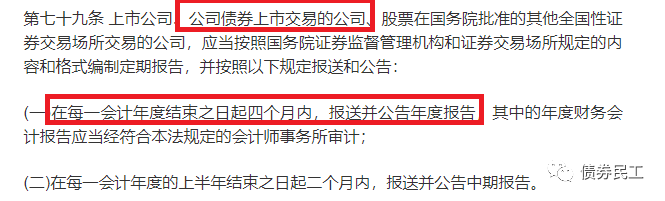 根據新《證券法》第七十九的明確要求,債券發行人需要在4月30日之前披露年報報。除非有明確的延期理由和延期事項,年度報告披露是不能延期的。