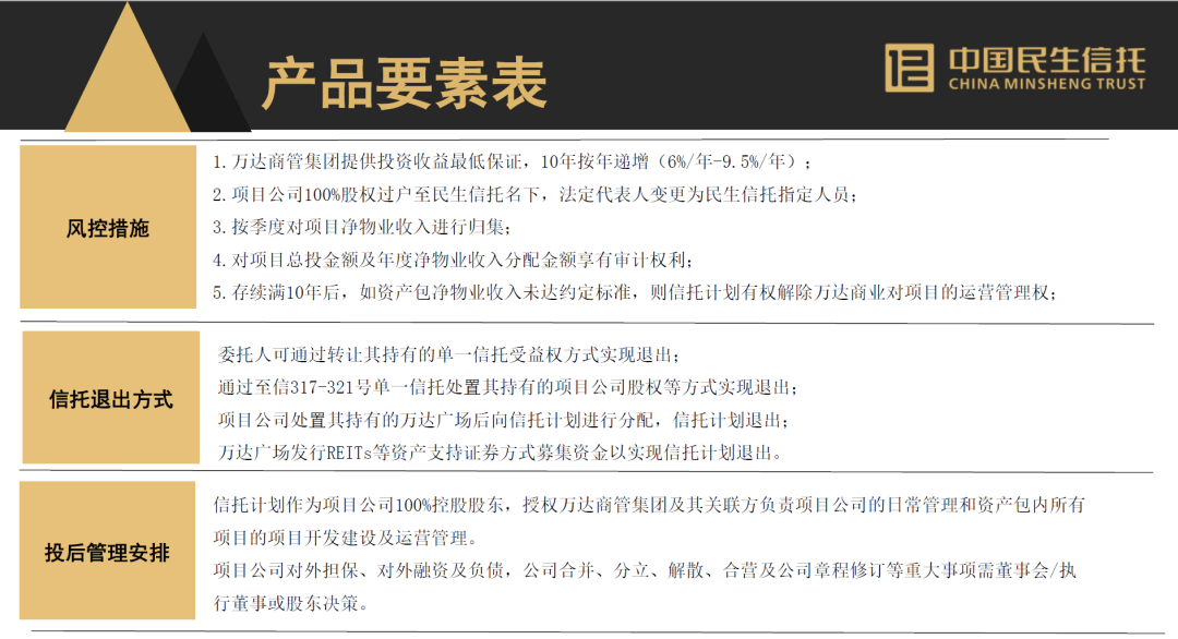 5.存續(xù)滿10年后,如資產(chǎn)包凈物業(yè)收入未達(dá)約定標(biāo)準(zhǔn),則信托計(jì)劃有權(quán)解除萬(wàn)達(dá)商業(yè)對(duì)項(xiàng)目的運(yùn)營(yíng)管理權(quán);