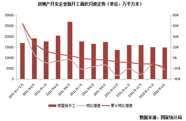 據國家統計局數據:1—3月,房地產開發企業房屋施工面積806259萬平方米,同比增長1.0%;房屋新開工面積29838萬平方米,下降17.5%;房屋竣工面積16929萬平方米,下降11.5%。