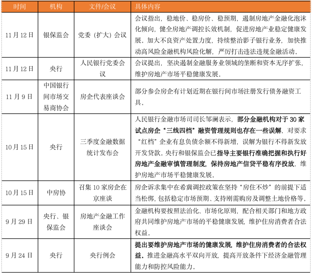 圖:9月底以來(lái)政策密集發(fā)聲維穩(wěn)房地產(chǎn),支持房企融資