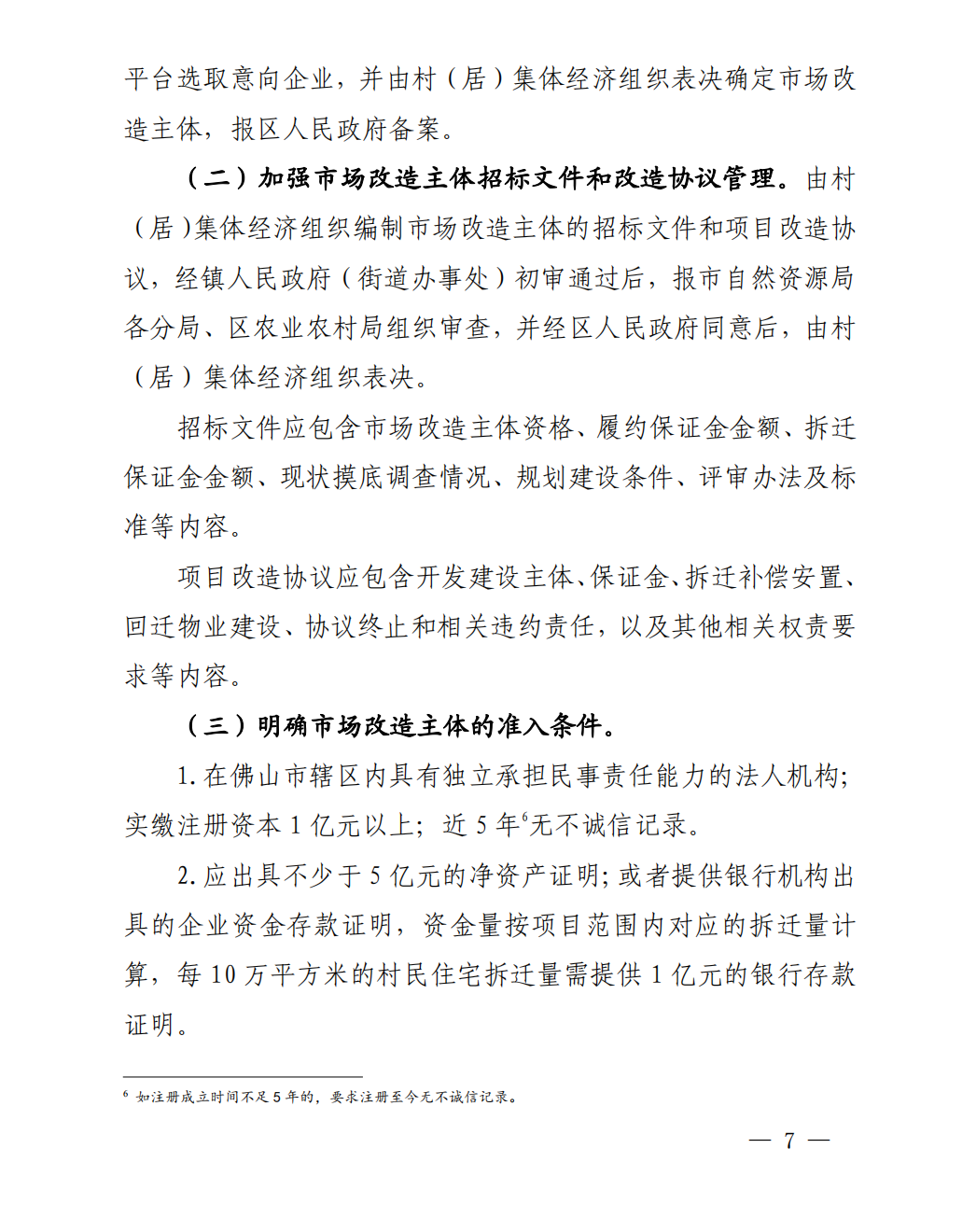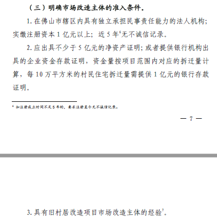 注意事項(xiàng):本部分內(nèi)容包含內(nèi)容較多,從市場改造主體的準(zhǔn)入、選取、管理機(jī)制、退出機(jī)制等做了詳細(xì)規(guī)定,其中尤其需要注意的是市場改造主體的準(zhǔn)入條件、退出機(jī)制等,后續(xù)如企業(yè)擬參與佛山區(qū)域舊村居改造項(xiàng)目的,需提前根據(jù)政策要求進(jìn)行布局(如佛山市轄區(qū)成立能夠獨(dú)立承擔(dān)民事責(zé)任的法人機(jī)構(gòu),實(shí)繳注冊資本一億元以上等),另外,新政對退出機(jī)制做了較嚴(yán)格的規(guī)定,明確市場改造主體應(yīng)當(dāng)在2年內(nèi)完成與項(xiàng)目范圍內(nèi)80%以上土地房屋權(quán)利人簽訂拆遷補(bǔ)償安置協(xié)議,該退出機(jī)制的設(shè)定,將一定程度上影響企業(yè)的項(xiàng)目推進(jìn)節(jié)奏和計(jì)劃。