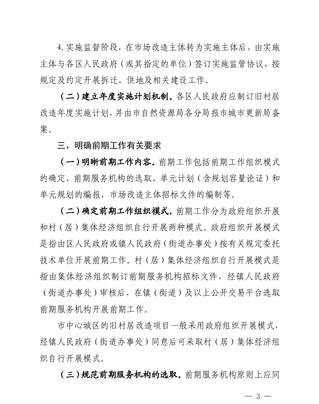 本部分明確了兩個(gè)內(nèi)容:1、明確舊村居改造階段工作;2、明確由各區(qū)人民政府建立年度實(shí)施計(jì)劃機(jī)制。