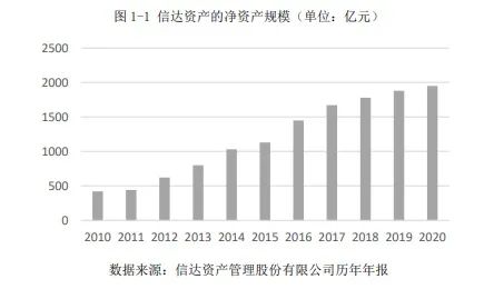 圖1-1顯示,信達資管成立時凈資產為100億,經十年發展至2010年凈資產為425億,至2020年增長至1950億;信達作為樣本反映了四大資管發展的三個階段:1是政策性資產包階段凈資產穩步小幅增長;2是全面商業化后凈資產快速發展;3是2018年“回歸主業”后凈資產增長大幅減緩。