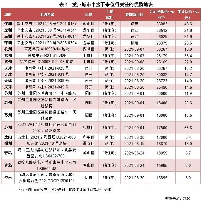 此外,天津南開區、蘇州工業園區、濟南歷城區、福州晉安區等均掛出多宗優質地塊,房企也可重點關注。