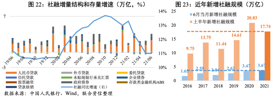 ·上半年CPI溫和上漲;PPI持續上漲但6月漲幅略有回落,主要是上游三黑一色行業價格帶動;社融存量同比增速整體呈下行趨勢,新增信貸創歷史新高,實體融資需求旺盛。