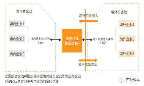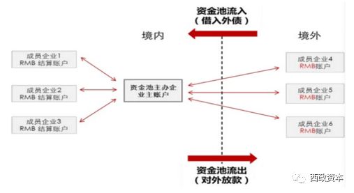 第二種:境內(nèi)外均有一個資金池,然后進行跨境的資金劃撥。
