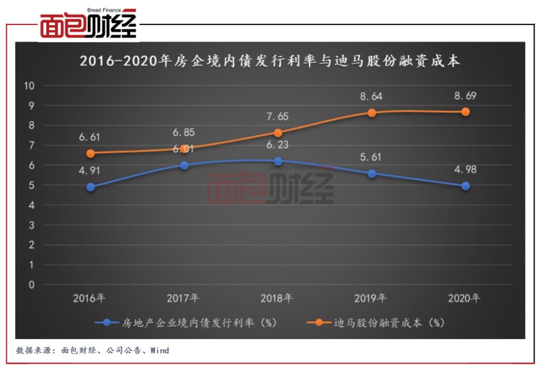 圖1:2016-2020年房企境內(nèi)債發(fā)行利率與迪馬股份融資成本