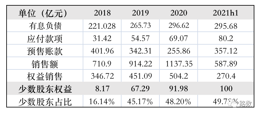 除了明面上的債務(wù),新力地產(chǎn)還有兩大風(fēng)險:一是較低銷售權(quán)益比所對應(yīng)的較高少數(shù)股東權(quán)益;二是針對上下游企業(yè)的應(yīng)付款項。▼