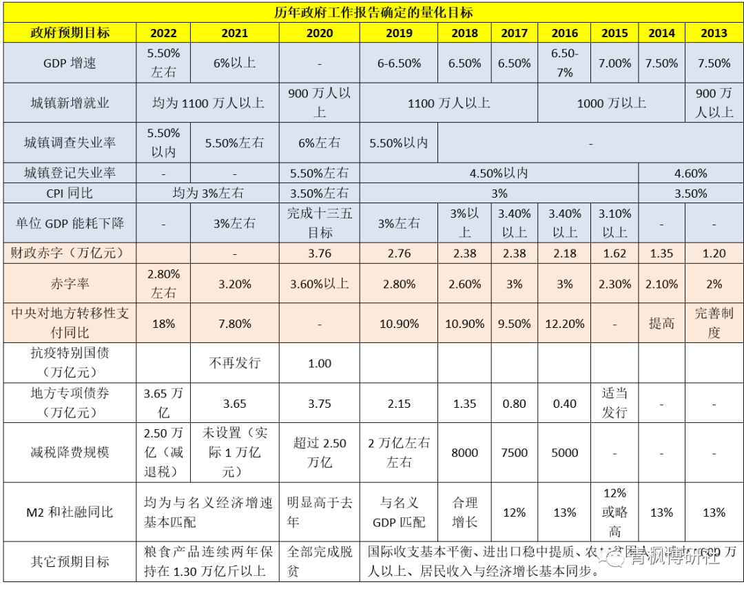 (一)2013年以來(lái)歷年政府工作報(bào)告量化目標(biāo)對(duì)比表