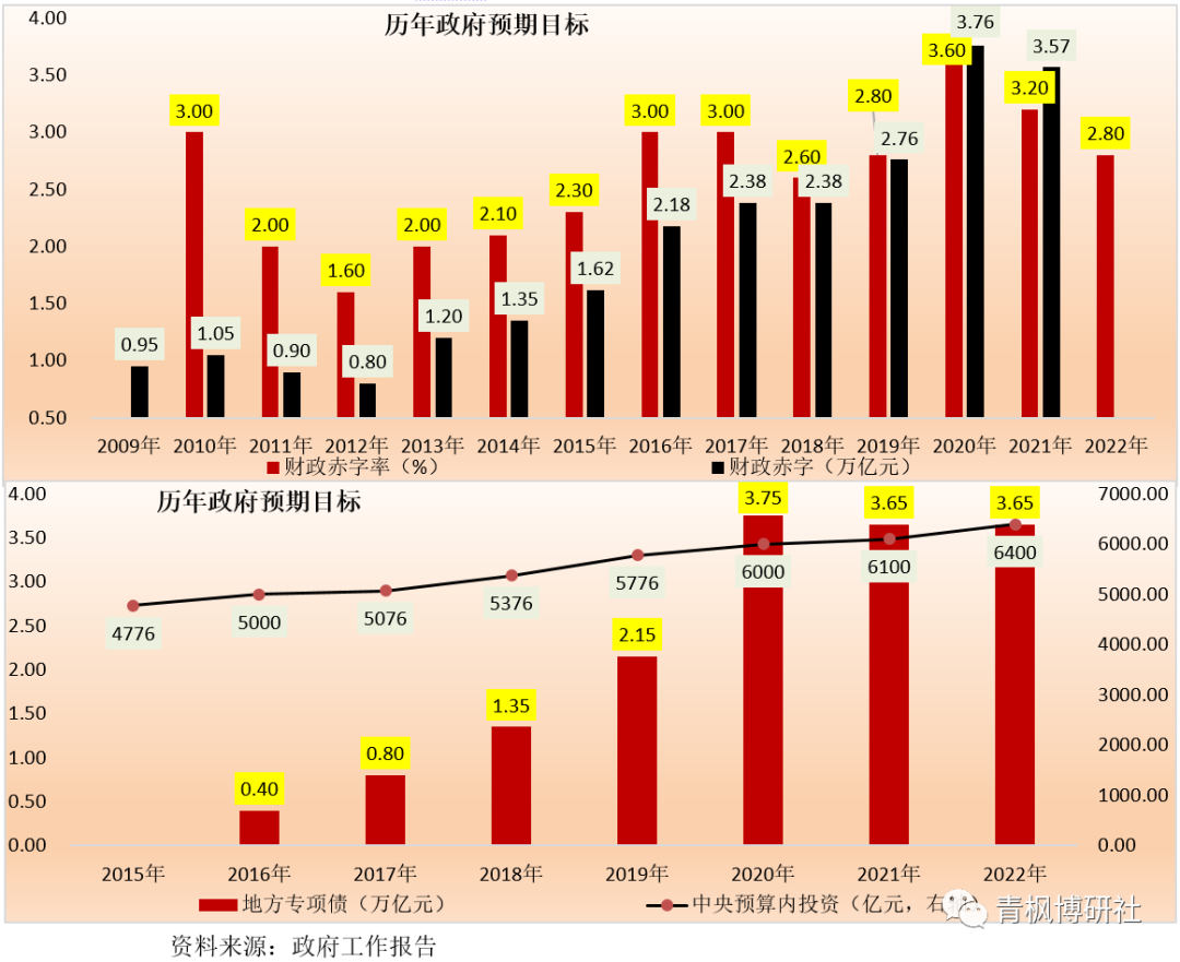 (一)雖然專項(xiàng)債規(guī)模沒(méi)發(fā)生變化,但中央預(yù)算內(nèi)投資規(guī)模較2021年大幅增長(zhǎng)300億元至6400億元,相對(duì)來(lái)說(shuō)比較積極,此舉我們理解意在穩(wěn)投資以及引導(dǎo)投資,通過(guò)中央預(yù)算內(nèi)資金的引導(dǎo),來(lái)推動(dòng)更多資金加入。