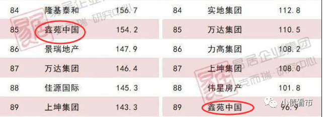 今年上半年,鑫苑中國?以154.2億操盤金額排第85位;以96.9萬平方米操盤面積排第89名,屬于中小房企。