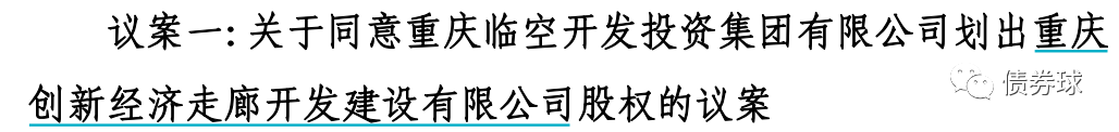 上述3只產品涉及的議案均為兩個,分別涉及:資產劃出和資產劃入,具體見下圖。本文討論的主要是議案一,關于發行人計劃將下屬子公司重慶創新經濟走廊開發建設有限公司100%股權劃出。