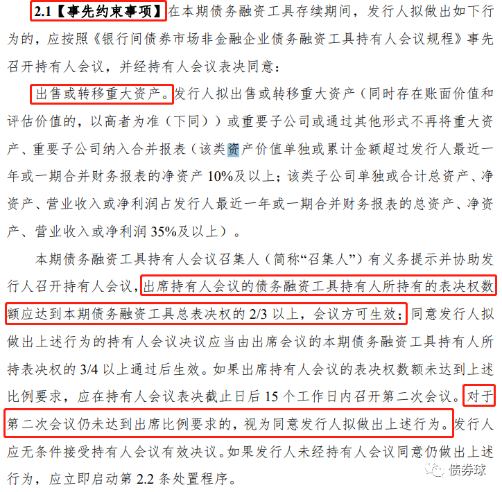 根據相關債券《募集說明書》的約定,如果第二次會議的債券持有人仍未達到出席會議比例要求,則視為投資人同意發行人擬做出的資產劃出行為。發行人就此事項已經連續召開兩次會議,出席人數均未達到要求,因此,發行人可以根據募集說明書約定,執行資產劃出的行為。