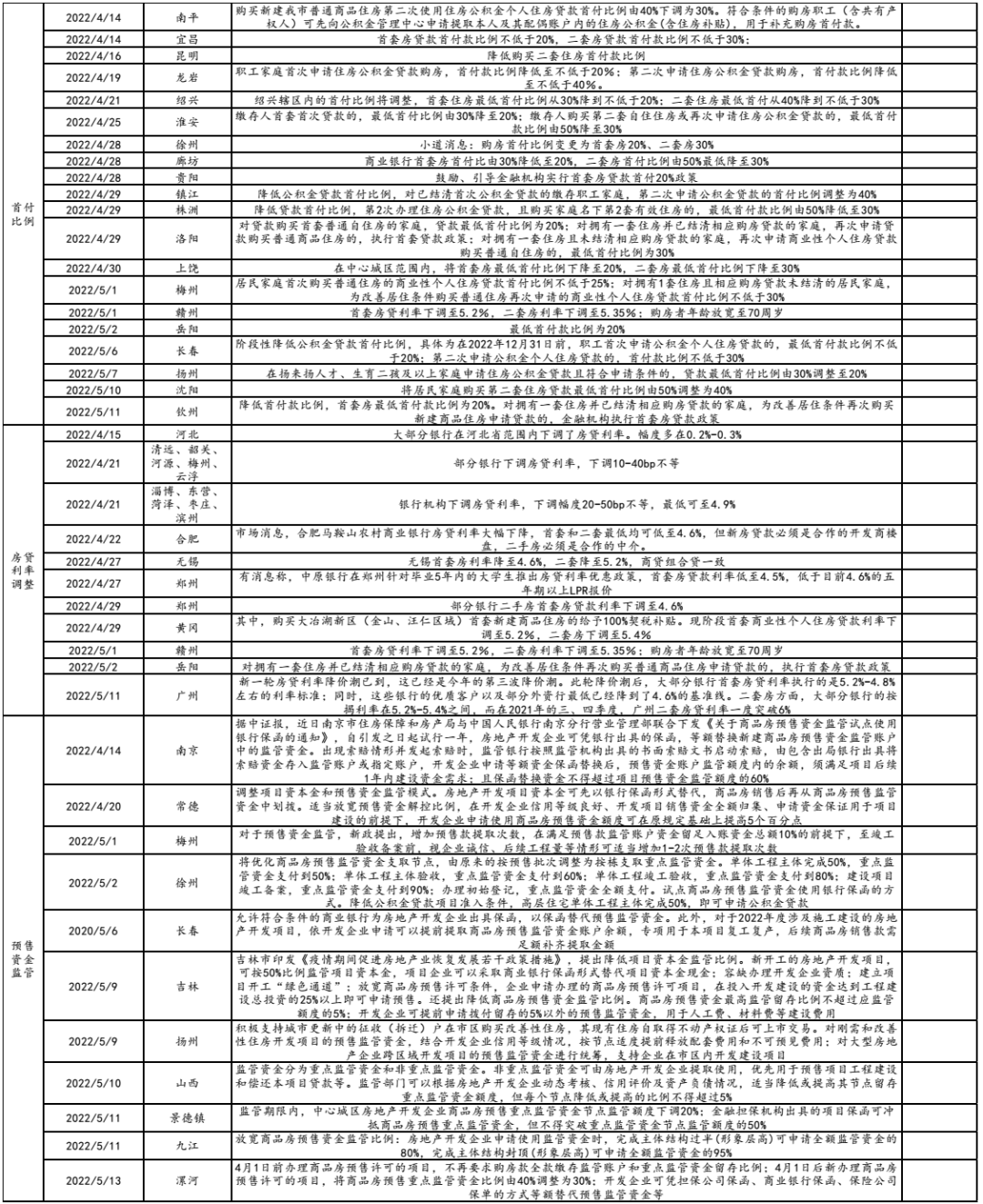另一方面,經濟走弱下收入預期的下降導致購買力降低+對地產行業悲觀預期+疫情限制銷售等多重利空因素壓制銷售端反彈無力,4月銷售金額累計同比下滑近30%。拿地端從4月以來的集中供地表現來看,除深圳外平均溢價率僅2.73%,天津、南京、濟南和東莞的流拍率較高,且多以國企和當地平臺托底為主。此外,資金到位的規模和結構仍在惡化,預收房款和按揭的下降反映購房需求疲軟依舊。