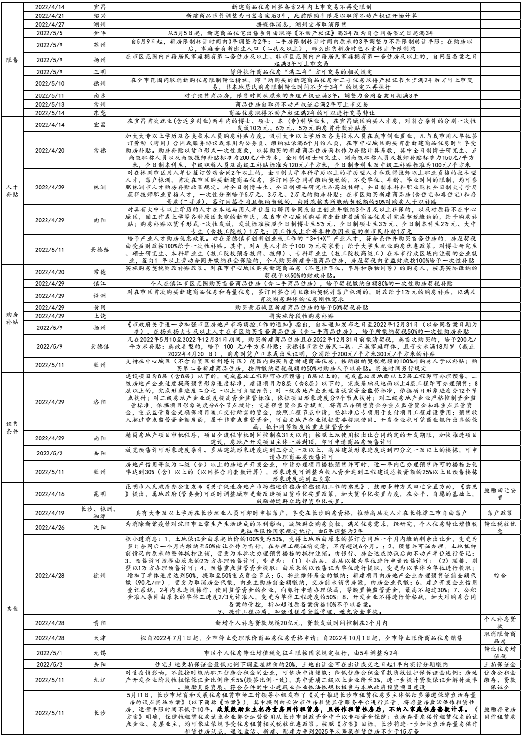 截至5月16日,22年以來全國累計出臺紓困政策近300次,當前樓市松綁較之前進入第二階段,更多省會強二線城市加入,如成都、杭州、蘇州等,更有長沙提出的創新思路即“鼓勵存量房做租賃房”,但這些政策實操層面有諸多限制,且更大目的在下行時托市,針對于遠郊和二手房市場,邊際改善程度有限。