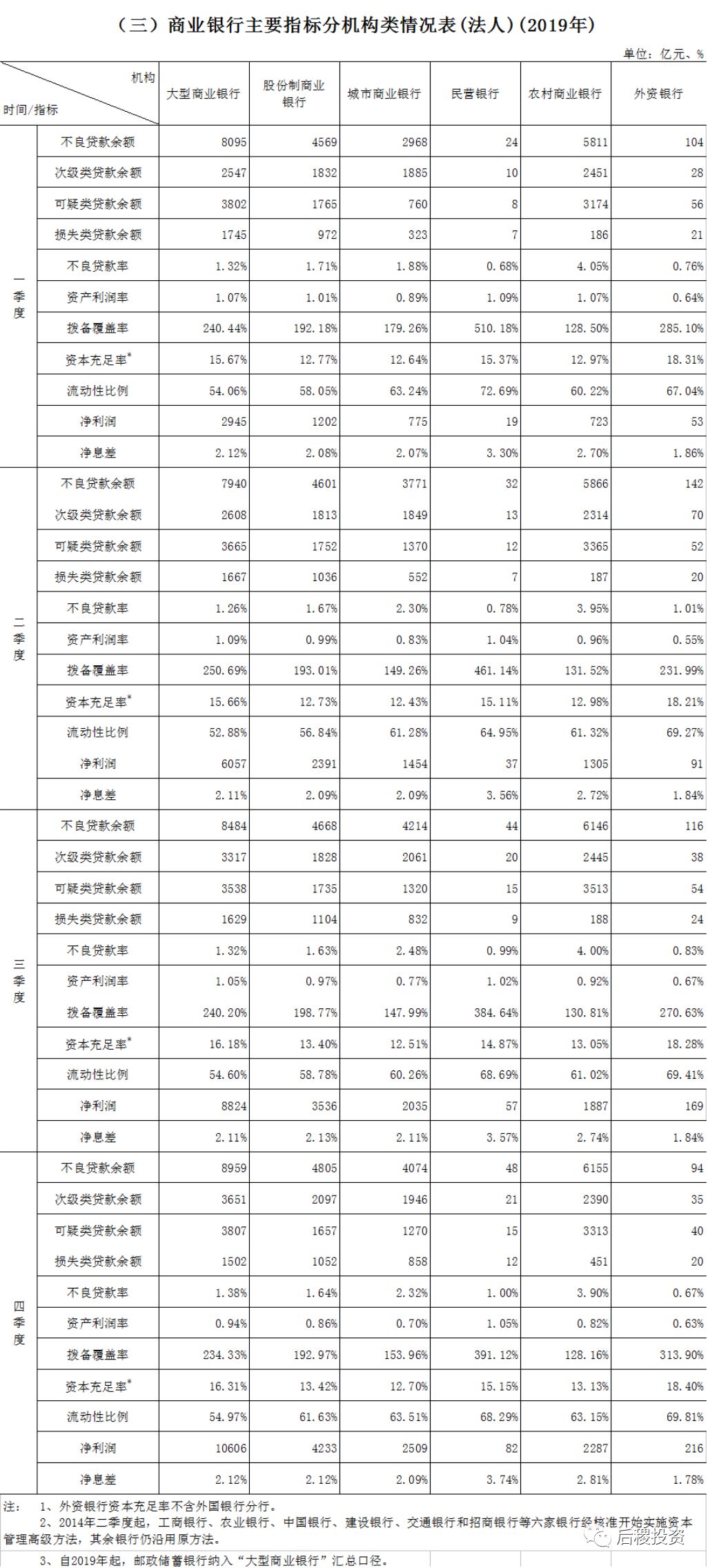 1、2019年四季度銀行業主要監管指標