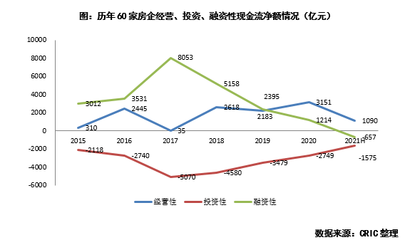 2021上半年融資性現金流首次為凈流出