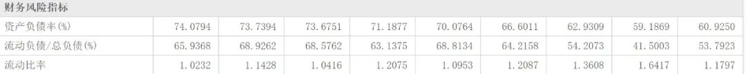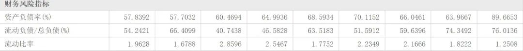 資產負債率同比微升——從2020年的57.7%上升到2021年的57.8%,當然也不算高哈;流動負債占比依然不低(2021年為54.24%);